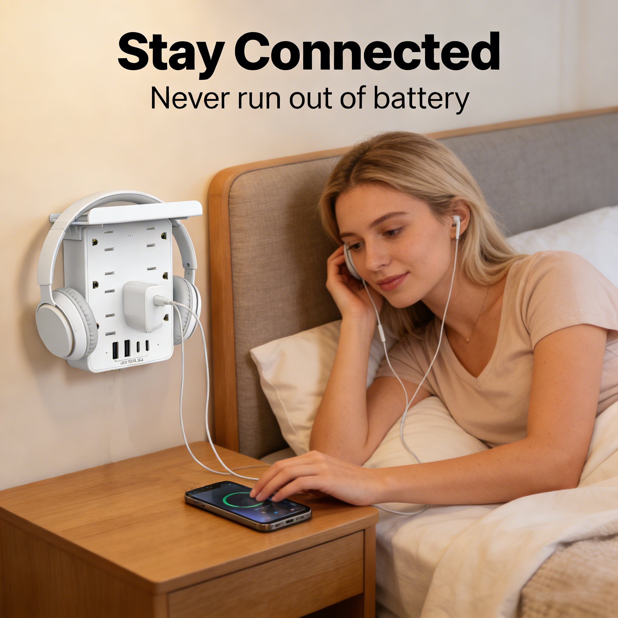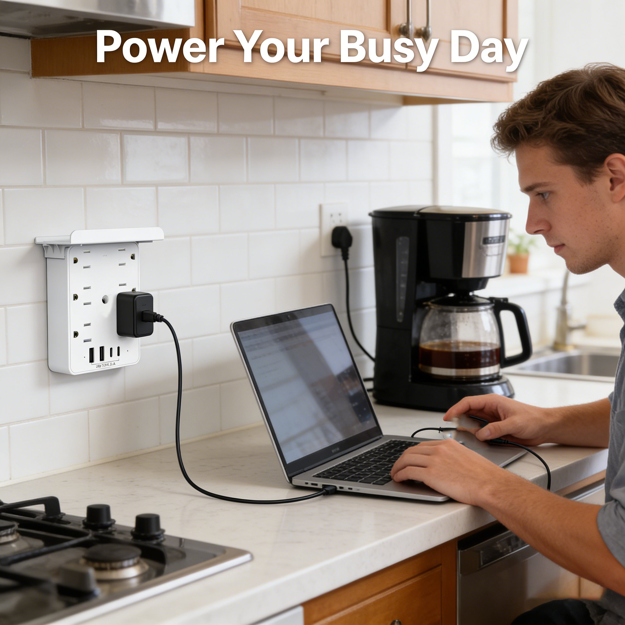 "This charging strip cleaned up my desk instantly. I love the built-in phone stand — it’s perfect for Zoom meetings and charging at the same time."